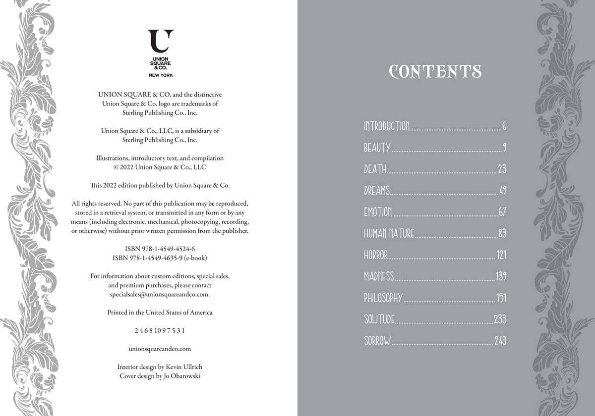 An illustrated wit-and-wisdom-style packaging of quotes and excerpts from the fiction and nonfiction of Edgar Allan Poe, organized by theme and presented in a lighter-than-Poe context. This book will collect several hundred quotes and aphorisms from Poe's poetry, fiction, and nonfiction. Quotes will be organized in thematic chapter groupings, and each chapter will be prefaced with several introductory paragraphs that discuss Poe's preoccupation with their subject matter in a lighter vein. Chapter subjects will include such themes as "Madness," "Dreams," "Revenge," "Mortality," and "Premature Burial." Spot illustrations will be distributed through the text.