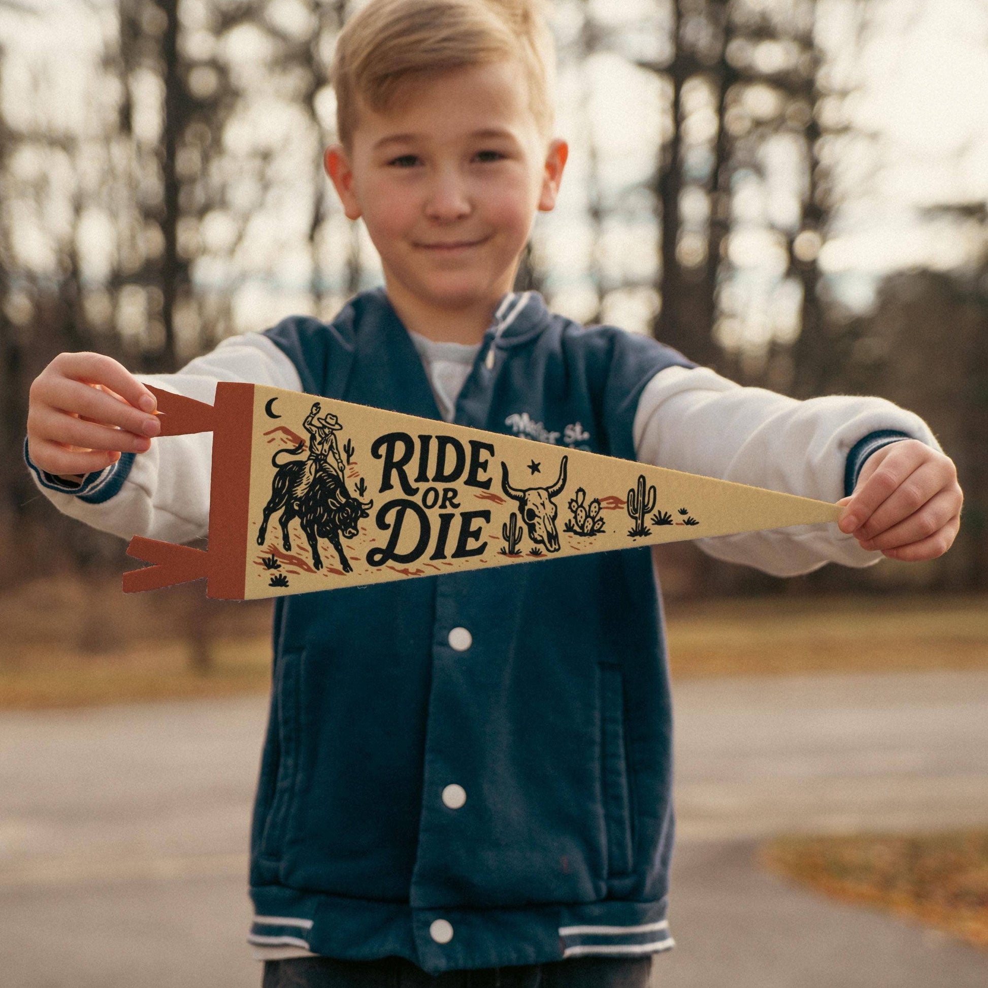 Bring fierce western energy to your space with our “Ride or Die” felt pennant! Handmade by Benoits Design Co with rustic charm, this banner is perfect for cowboys, cowgirls, and ranchers who live life full throttle. Hang it in your home, bar, or barn for a fun, edgy touch of country spirit - or gift it to your favorite wild-hearted friend who’s always ready to saddle up and ride.